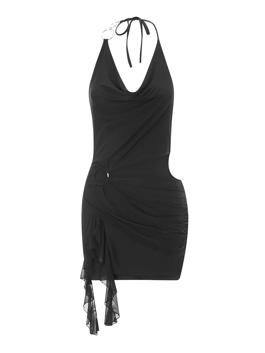 Women Summer Mini Beach Dress Sleeveless Backless Halter Neck Tie Dye/Leopard/Solid Color Dress