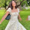 - Neckline: Square Collar