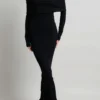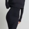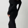 Women’s Long Fitted Evening Dress Black Long Sleeve Off Shoulder Strapless Party Dress
