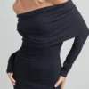 Women’s Long Fitted Evening Dress Black Long Sleeve Off Shoulder Strapless Party Dress