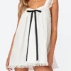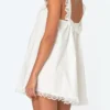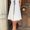 Women Mini Dress Lace Trim Fly Sleeve Bowknot Embellished Short Dress Summer Fashion Casual Dress