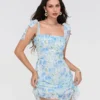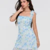 Women Retro Floral Dress Tie-Up Spaghetti Strap A-line Mini Dress Evening Party Vintage Fairycore Summer Dresses Female