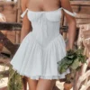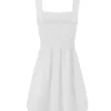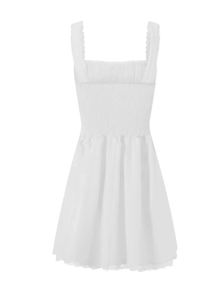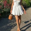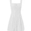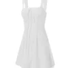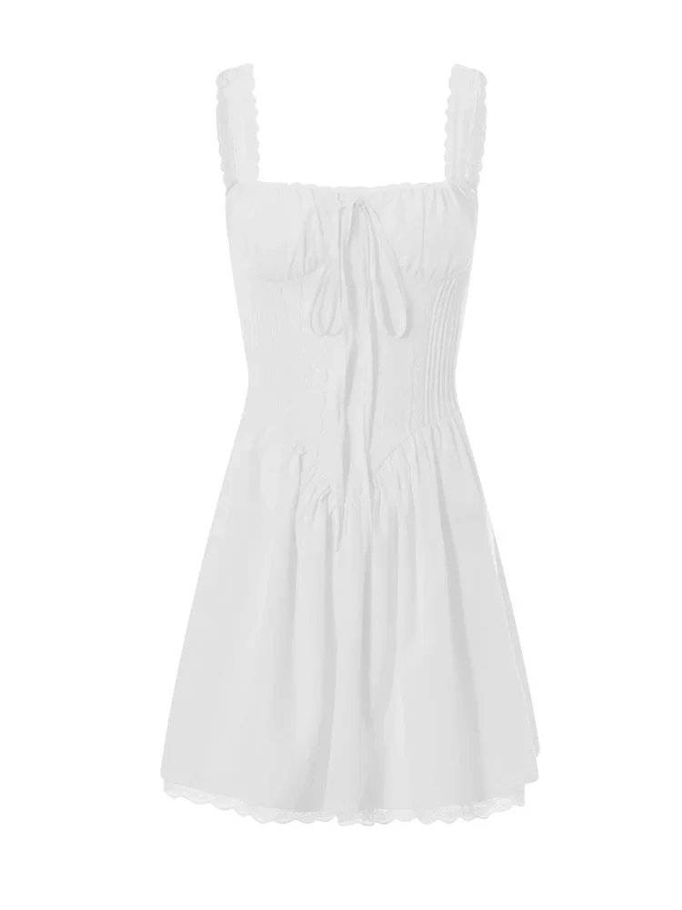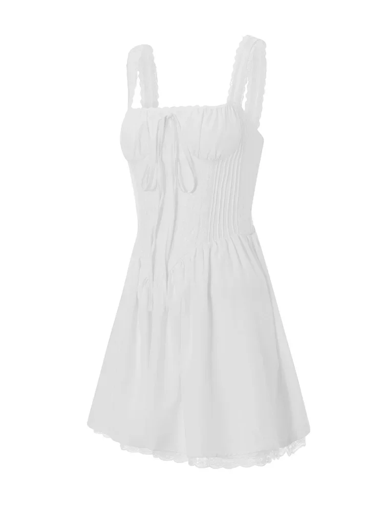 Women Summer Dress Sleeveless Square Neck Corset Tie-up Pleated Short Dress Casual Vintage Dress