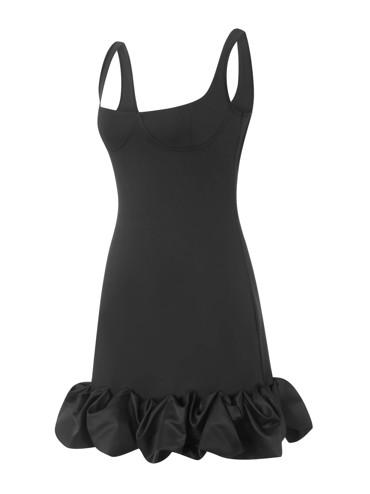Women Spaghetti Strap Bodycon Dress Solid Color Pleated Ruffle Hem Sleeveless Party Dress for Cocktail Nightclub Beach