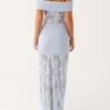 Women’s Long Evening Dress Off Shoulder Knotted Slim Lace Dress
