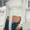 Womens Slim Fitted Tops Long Sleeve Off Shoulder Going Out Fashion Fall Crop Shirts
