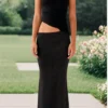Women’s One Shoulder Long Dress Stylish Solid Hollow Out Sleeveless Slim Fit Bodycon Summer Dress for Party Evening