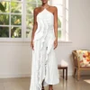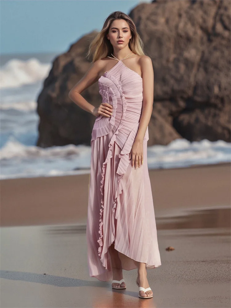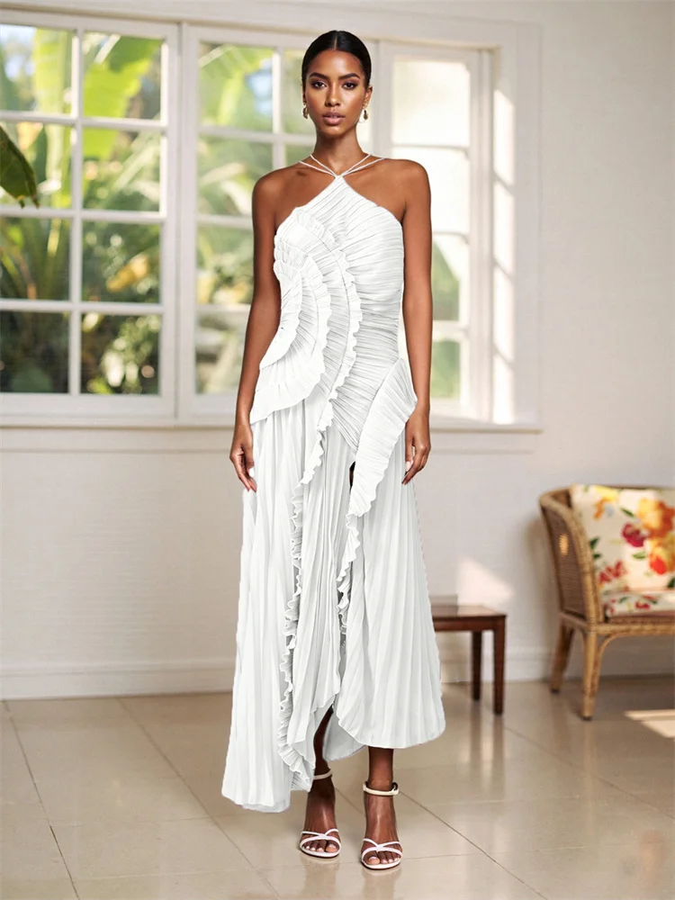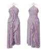 Women’s Ruffle Halter Dress Sleeveless Solid Color Long Flowy Dress Summer A-Line Dress