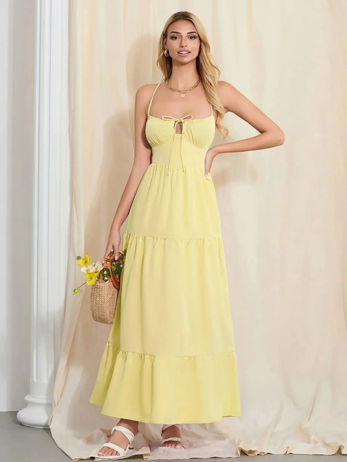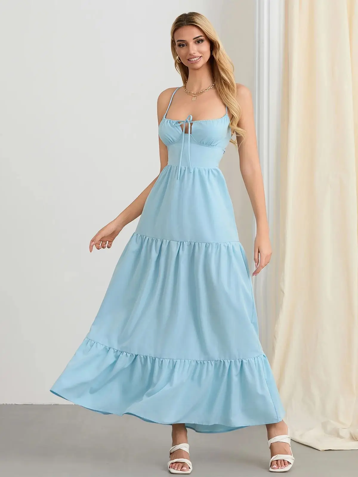 - Neckline: Square Collar
