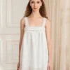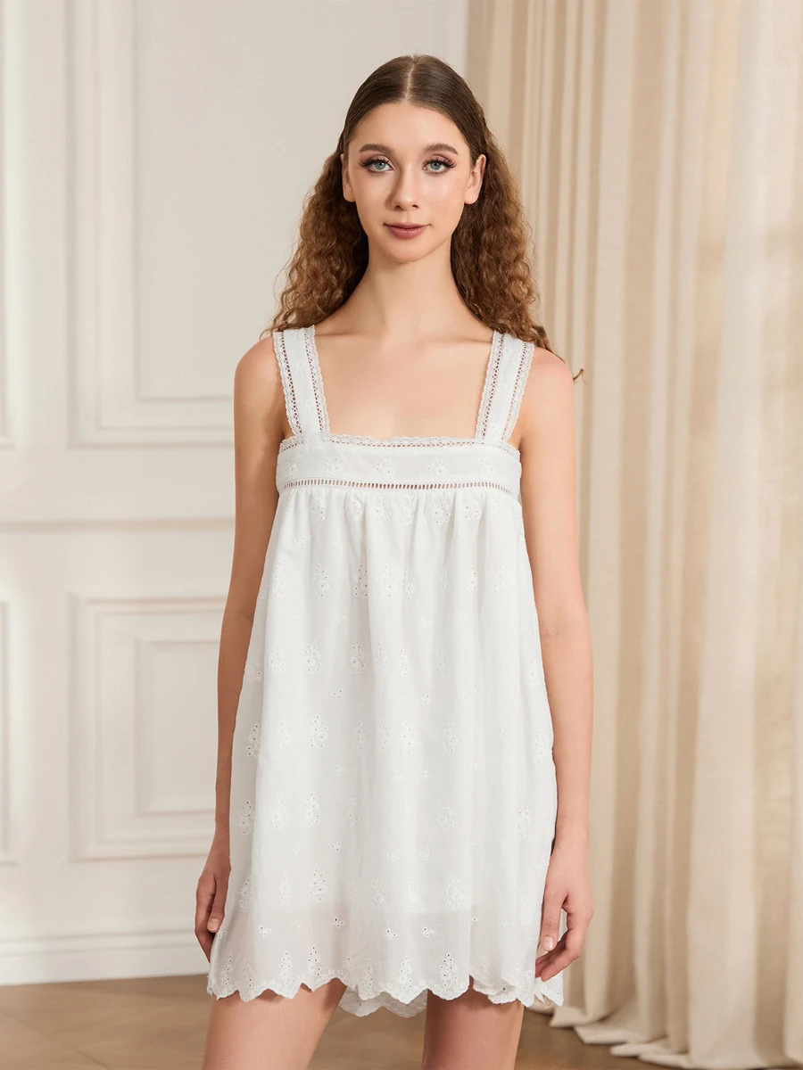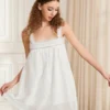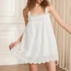 Women’s White Dress Front Tie Bow Solid Lace Trim Sleeveless Loose Fit Mini Dress for Summer
