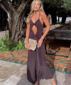 Women Evening Party Sexy Dress Sleeveless V Neck Cut Out Backless Long Dress Summer Beach Club Dresses Female