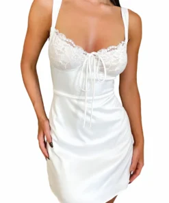 Summer Women Spaghetti Strap Dress Sleeveless Lace Corset Bandage Mini Dress Casual Sexy Vintage Dresses