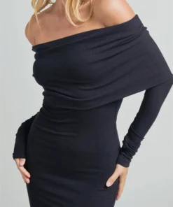Fall Women’s Off Shoulder Mini Dress Decorative Belt Solid Color Long Sleeve Bodycon Dress Fashion Elegant Party Dresses