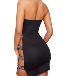 Women Sexy Pencil Dress Strapless Rhinestone Hollow Out Bodycon Short Dress Evening Party Club Elegant Summer Dresses